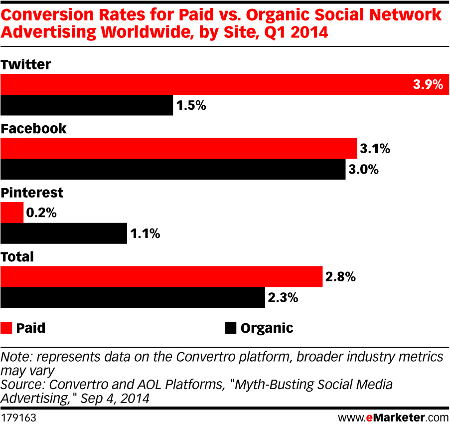• Paid Social Media Ads: Sponsored tweets are more than twice as likely as organic tweets to convert users.